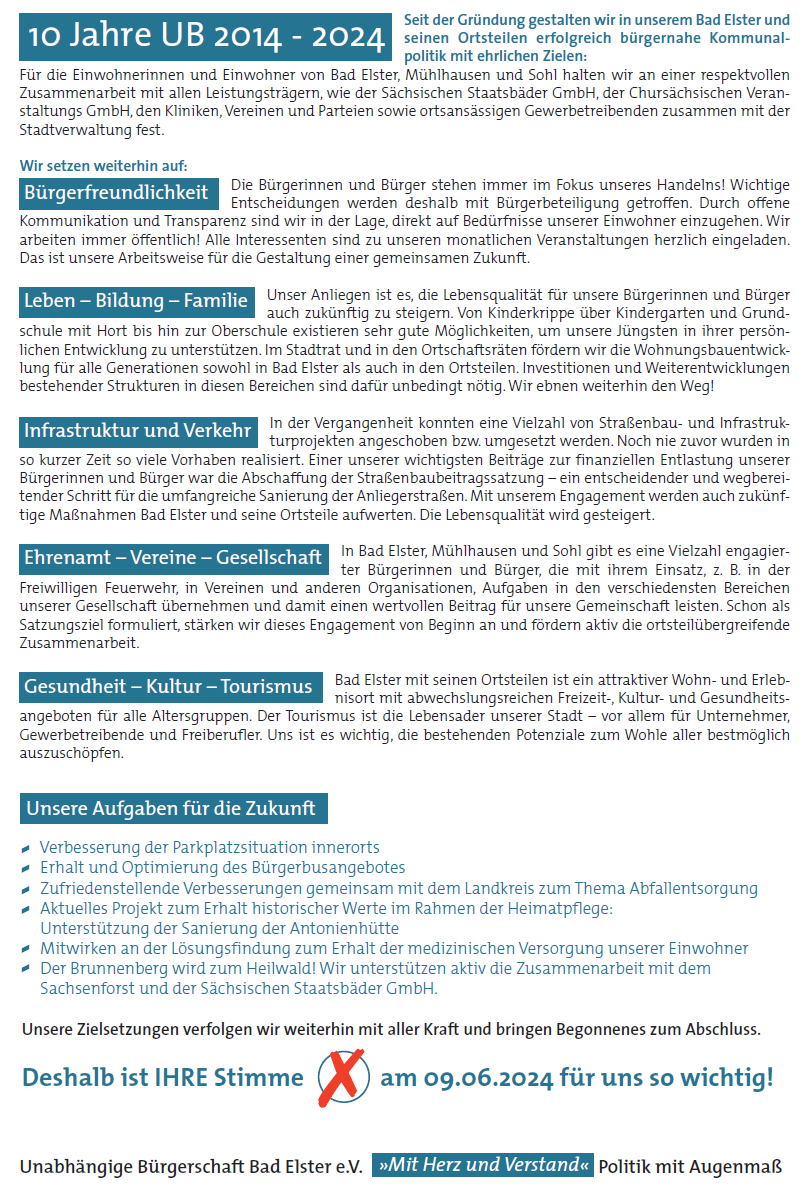 10 Jahre Unabhängige Bürgerschaft e.V. Bad Elster