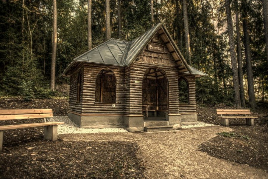 Dank der UB hat die Wander-Hütte Eremitage wieder eine neue "Besucher-Box" mit Eremitage-Stempel und Besucher-Buch für Eintragungen.